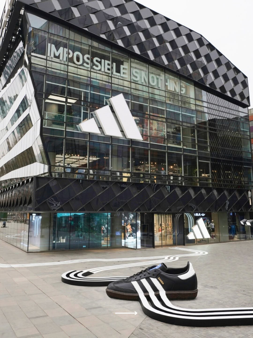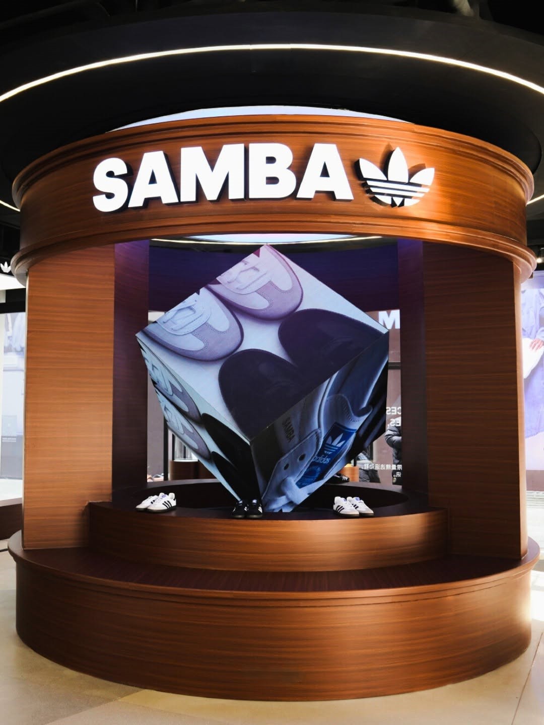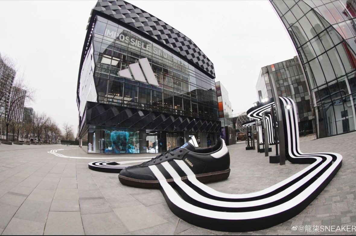 The Beijing Samba pop up is a clear example of Adidas investing in the shoe’s cultural story beyond performance or lifestyle advertising, using environment and scale to keep the Three Stripes visible in a crowded market.