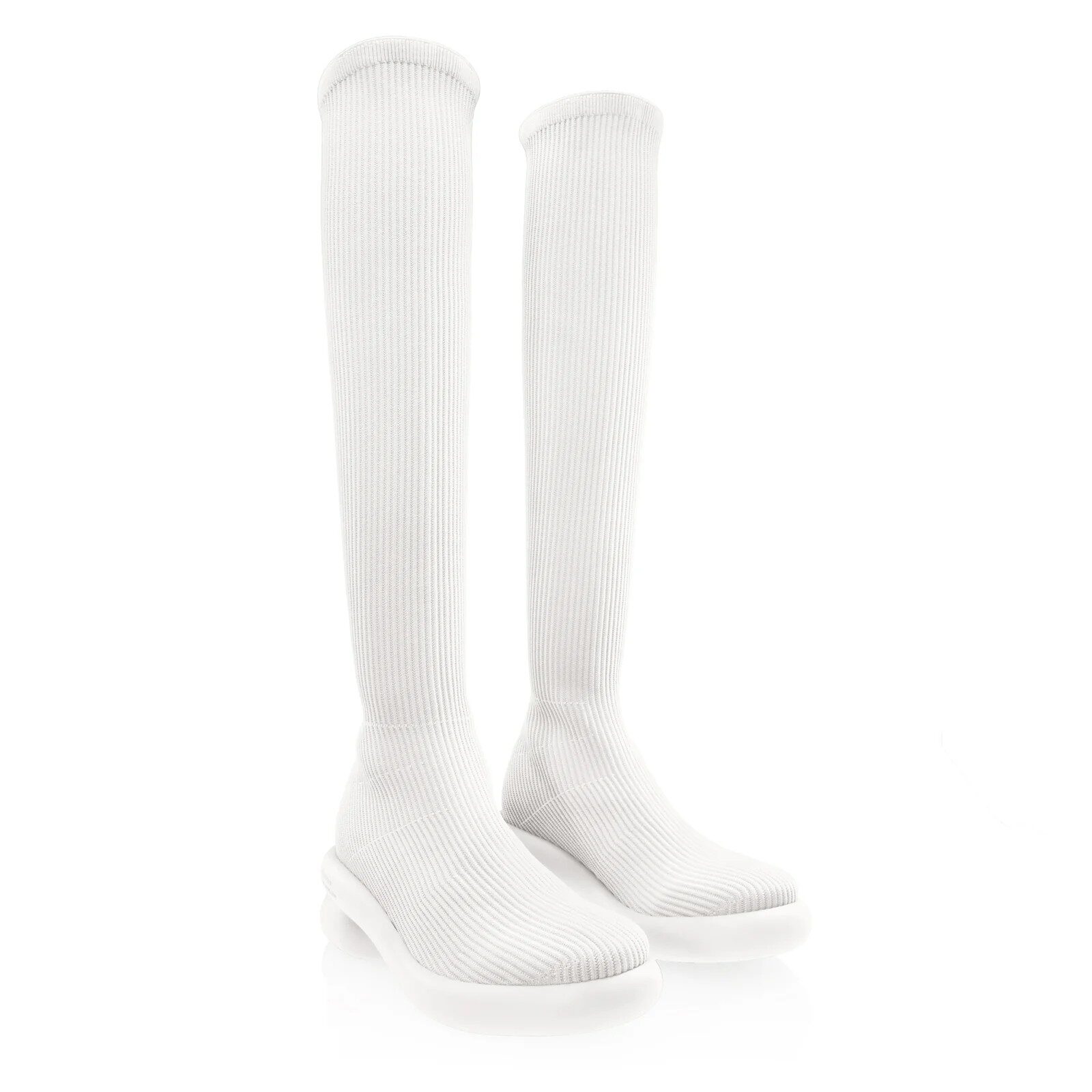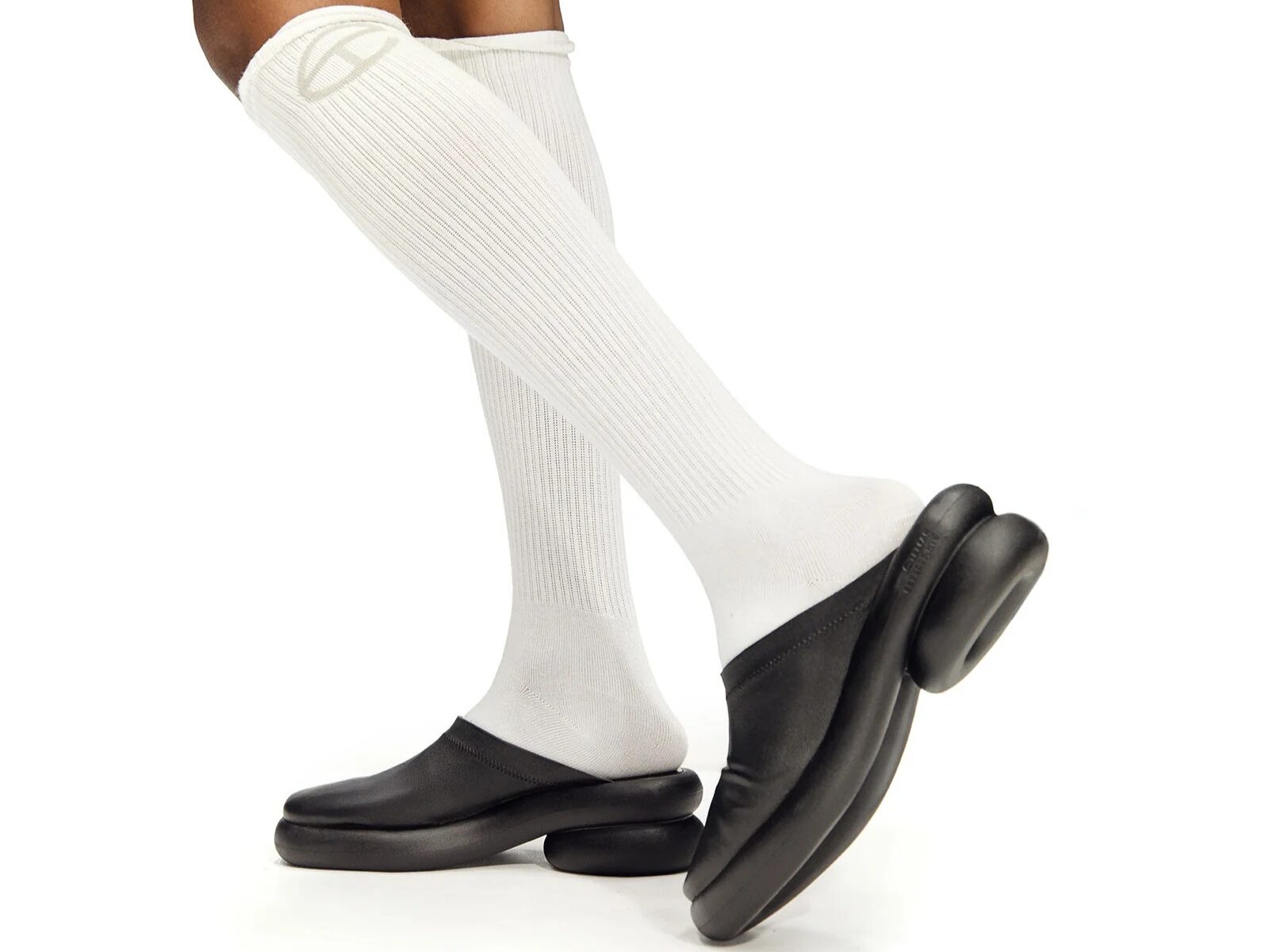 The Modular system is built around a single tubular sole structure that wraps around the toe and coils at the heel to create lift. This structure forms the architectural base for three distinct shapes: the Mid Modular Boot, the Tall Modular Boot, and the Modular Mule. Each silhouette uses the same structural foundation while shifting in height and proportion. Thus, it creates a coherent family of footwear rather than three separate designs.